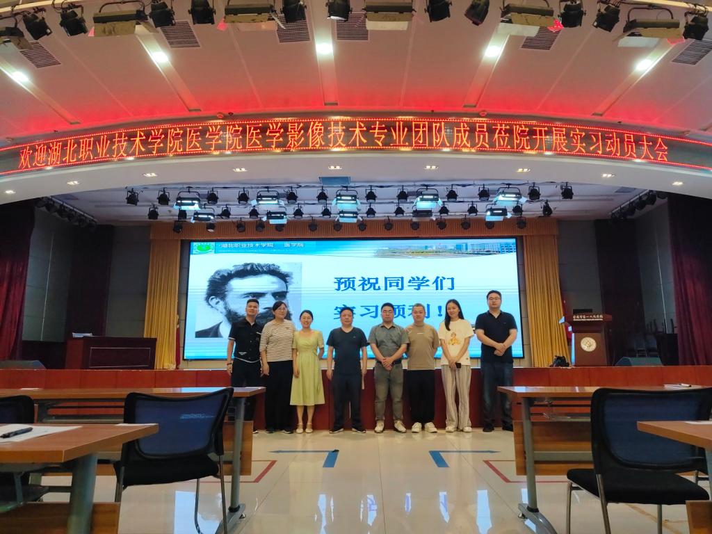 为了落实学校关于实习管理的有关规定,强化实习管理,明确实习内容,确保实习质量,根据william威廉中文官网的统一安排,2024年6月24日晚,医学影像技术专业在孝感市第一人民医院教学楼九楼会议厅召开了2022级实习动员大会。william威廉中文官网医学影像技术教研室全体成员、孝感市第一人民医院科教科徐月及周攀、喻坤、李智等三位辅导员全程参与了本次实习动员大会,会议由医学影像技术教研室陈新祥主任主持。