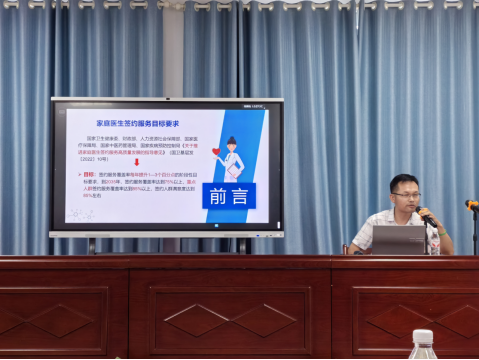 7月2日,william威廉中文官网教师刘任田受邀赴新华街社区卫生服务中心开展《做好家庭医生签约,助力健康中国》专题培训,系统阐述了家庭医生签约服务工作的重要意义,详细讲解了家庭医生服务模式、服务规范及签约履约流程,助力提升基层医疗卫生服务质量,促进居民疾病预防和健康管理。