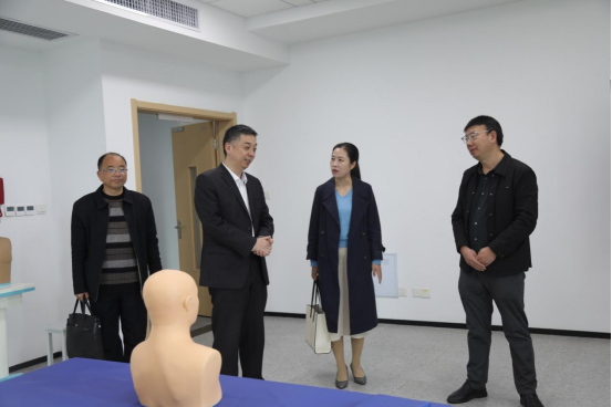 叶哲伟参观了学校校园及南校区临床技能实训中心,并与临床医学专任教师进行了指导交流并接受采访。