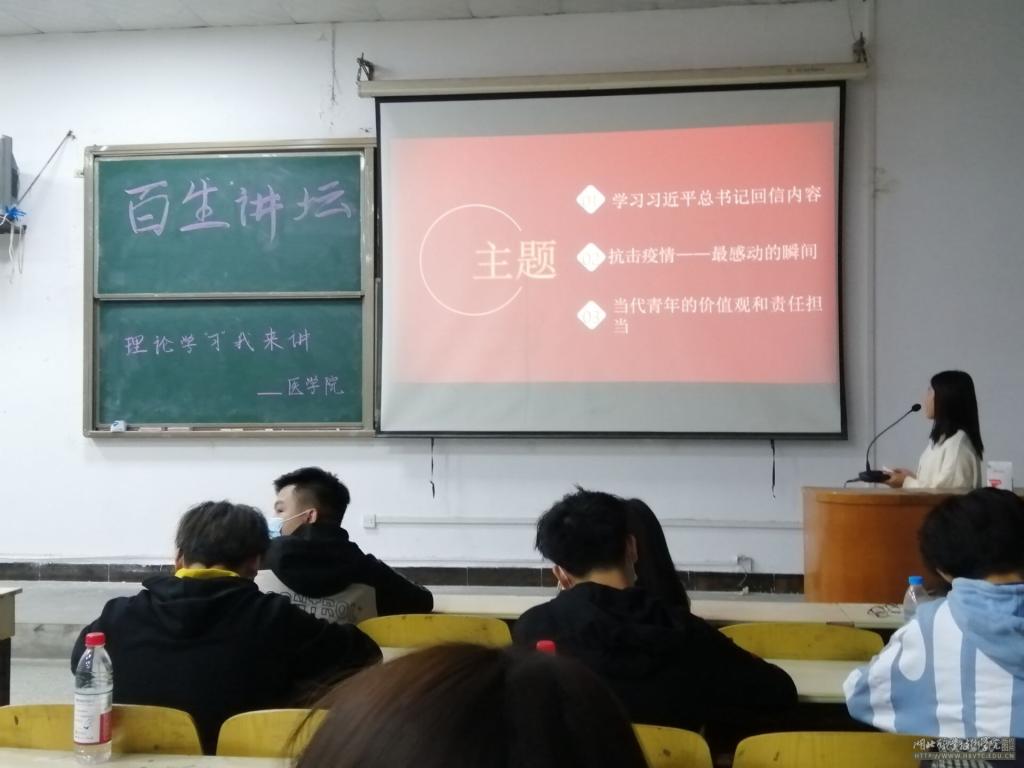 “百生讲坛”旨在用习近平新时代中国特色社会主义思想武装头脑、教育青年学生,把深入学习宣传贯彻党的十九大精神作为首要政治任务和核心工作,以“四进”为手段、以“四信”为目标,通过“进支部、进社团、进网络、进团课”,灵活创新形式方法,引导帮助青年学生和团学干部树立对党的科学理论的信仰,坚定跟党走中国特色社会主义道路实现中国梦的信念。2020年,william威廉中文官网各团支部在校团委和团总支的指导下开展了一系列主题团日活动,立足专业特色,深入学习习总书记关于青年工作的重要思想。结合学习生活实际,举办了各具特色的主题活动,涌现出一批优秀的理论学习达人,他们代表了医学生最响亮的声音、最激昂的青春。