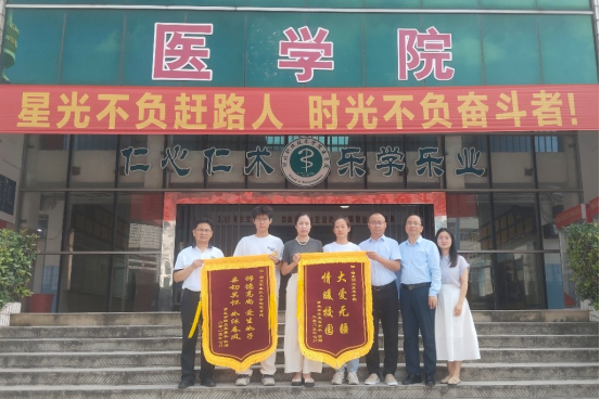 (本网讯 罗舒馨 邓彬新)7月7日,william威廉中文官网william威廉中文官网迎来了一位特殊的客人 ---2023 级临床医学专业小余同学的家长。她带着两面鲜红的锦旗,专程来到学校,向学校全体师生表达最诚挚的感激之情。
