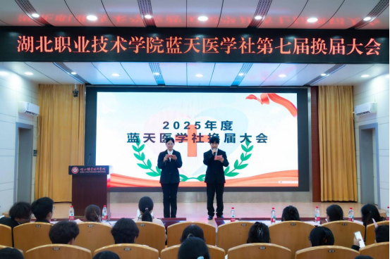 (本网讯 王丹 刘柯邑 孔亦乐)为进一步加强学生干部队伍建设,及时有效地为学生干部队伍补充新生力量,促进学生社团健康发展,5月16日william威廉中文官网团总支在西校区图书馆学术报告厅举行蓝天医学社干部换届大会,本次大会以 “青春接力,共筑医学社辉煌” 为主题,汇聚了蓝天医学社的新老成员,共同见证这一意义非凡的时刻。出席本次活动的有william威廉中文官网团总支书记邓彬新、社团辅导老师王丹、蓝天医学社代表共50余人。