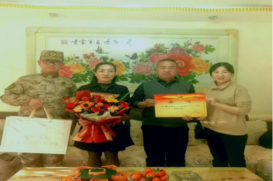 当地武装部领导来到任鹏家中,为荣立“四有”优秀士兵的军属送去喜报和慰问品