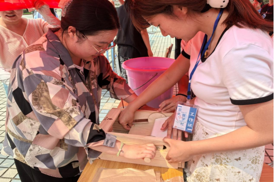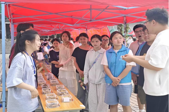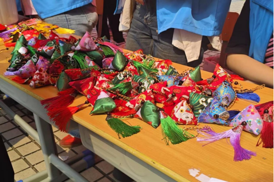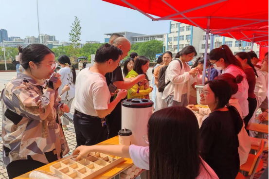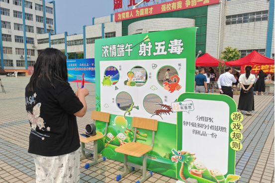 投壶挑战赛和射五毒游戏区,欢声笑语不断,师生们在趣味互动中体验古代民俗的乐趣;端午特色“五花茶”品鉴区,茶香四溢,大家在品尝茶饮的同时,了解其背后的文化寓意和养生功效;编织端午五彩绳活动现场,师生们将美好祝福编织其中。