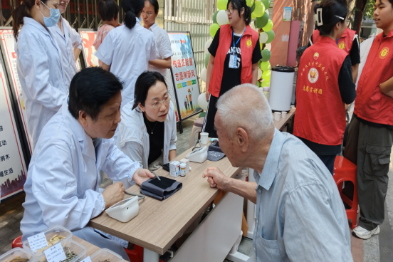 志愿者们精心打造游戏体验区、端午文化展示区和慢病义诊区,三区联动,沉浸体验惠泽社区居民。