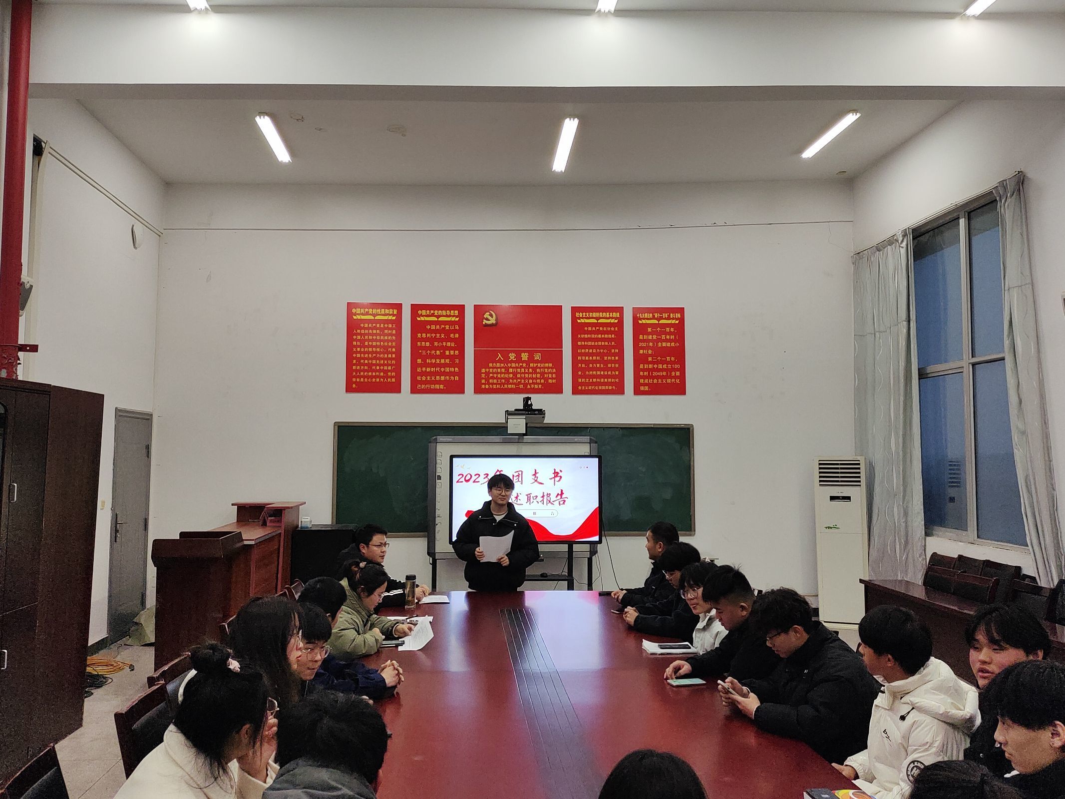 为了加强团组织建设,紧扣引领凝聚青年、组织动员青年、联系服务青年的基本职责,聚焦提升组织力、引领力、服务力和服务大局贡献度方面的履职情况,同时客观总结成绩、查找存在问题、提出改进措施,304永利集团官网入口于2月23日下午6点在汽车楼四楼405教室开展2023年度团支书述职报告会议。本次会议由我院团总支书记毛炜主持召开,学院全体班级团支书参与本次会议。