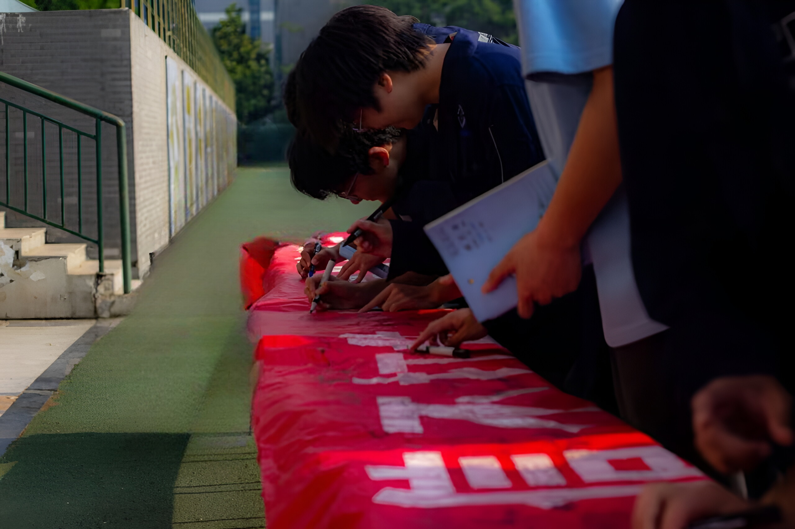 仪式的最后,全体学生在 “考场诚信不打烊 ,学子品格放光芒” 的横幅上郑重签字。学生们积极响应,纷纷走上前,用笔在横幅上留下自己的名字,这不仅是对自己诚信考试的承诺,更是对良好学风建设的支持。横幅上一个个坚定的签名,象征着学生们对诚信考试的坚守和对优良学风的追求。