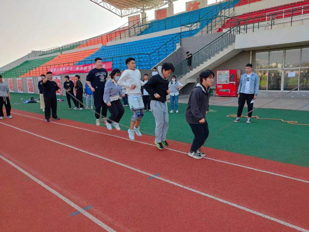 我院团总支还开展了校园踏青趣味活动。活动内容丰富,形式多样,涵盖了放风筝、跳大绳、踢毽子、五人四足、呼啦圈跑等项目。这些项目选择在学校运动场分散进行,同学们沐浴在春暖花开、风和日丽的室外,一个个热情似火,精神抖擞。校园里呈现出疫情封闭管理下一张张动静有序的美好画图。
