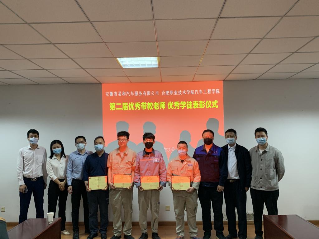 3月14日上午,我校304永利集团官网入口在安徽省易和汽车服务有限公司与该企业联合举行“三全育人”之“工匠精神”培育第二届优秀带教老师、优秀学徒表彰大会。安徽易和行政人事部经理罗曼、我校304永利集团官网入口党总支书记高恒平、学校与公司部分职工代表、受表彰的优秀带教老师、优秀学徒,以及我校部分实习生和见习生代表参加表彰大会。