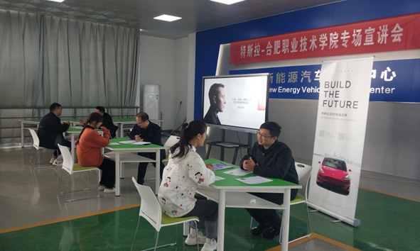 会后,在参观完学院实验实训场地后,特斯拉中国一行在304永利集团官网入口新能源汽车实训中心进行了现场宣讲,对特斯拉的发展历程、管理理念以及薪酬待遇进行了详细介绍,对现场41名即将毕业的2018级新能源汽车技术专业学生进行了一对一的现场招聘,招聘会结束后特斯拉中国一行对我院培养的学生专业技术水平和职业素养给予了高度评价和认可。
